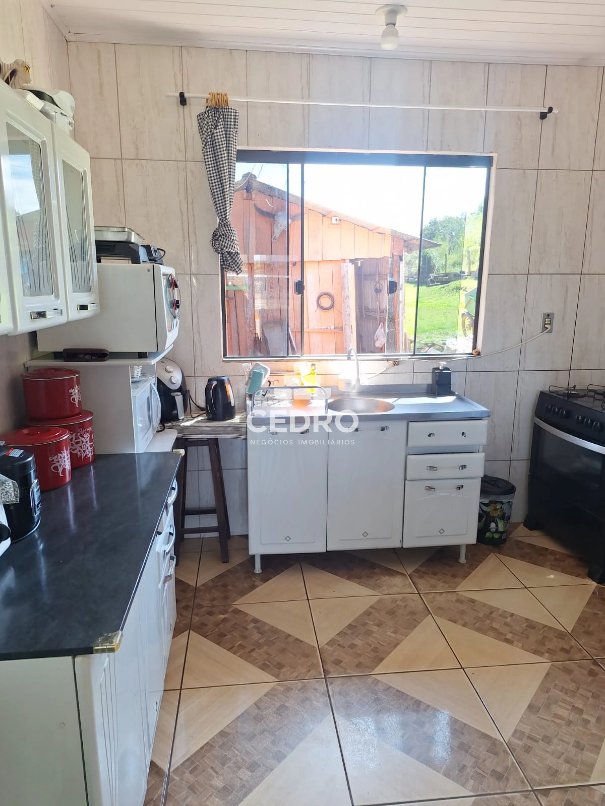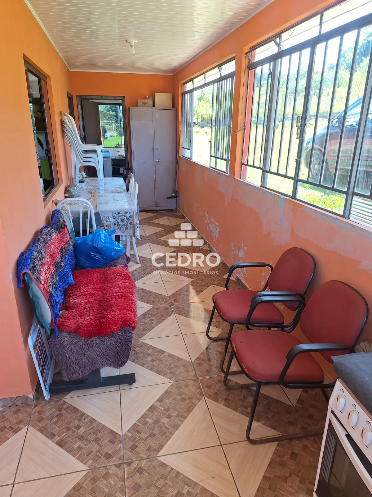 - Casa de 100m² com 2 quartos, banheiro social, sala, cozinha e lavanderia;